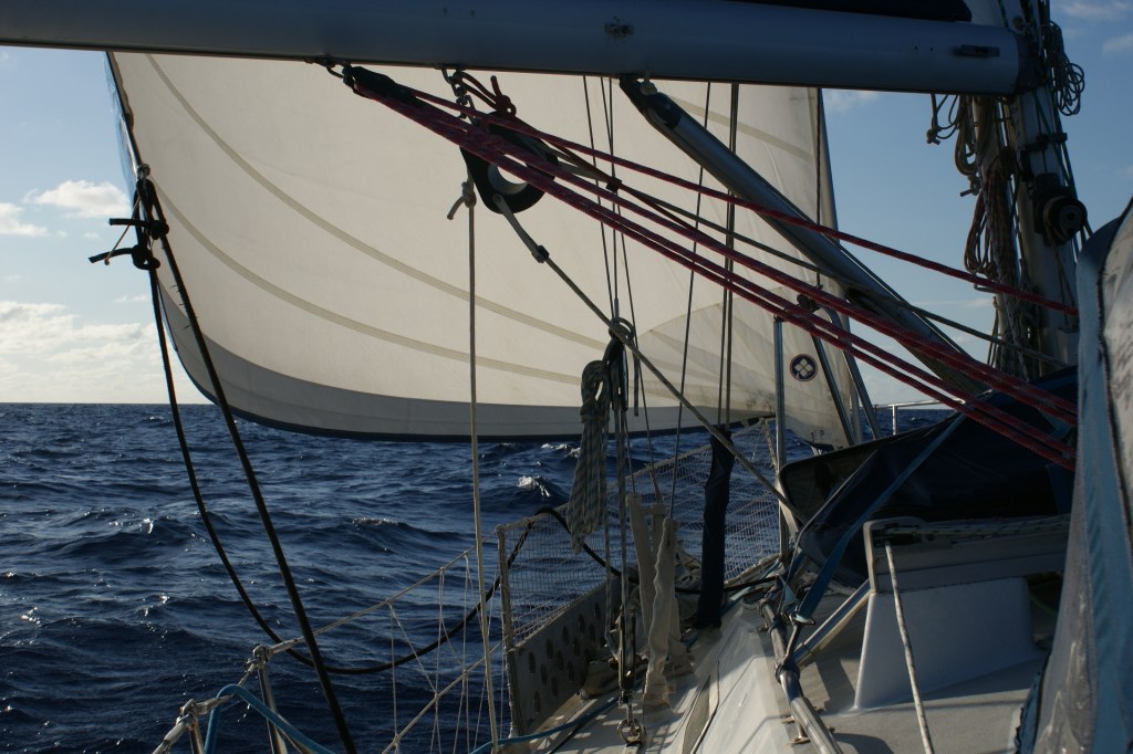 La journée du 21 se passe presque totalement à la voile, poussés par un petit vent redevenu plus calme, mais comme nous sommes au près bon plein ça avance bien.