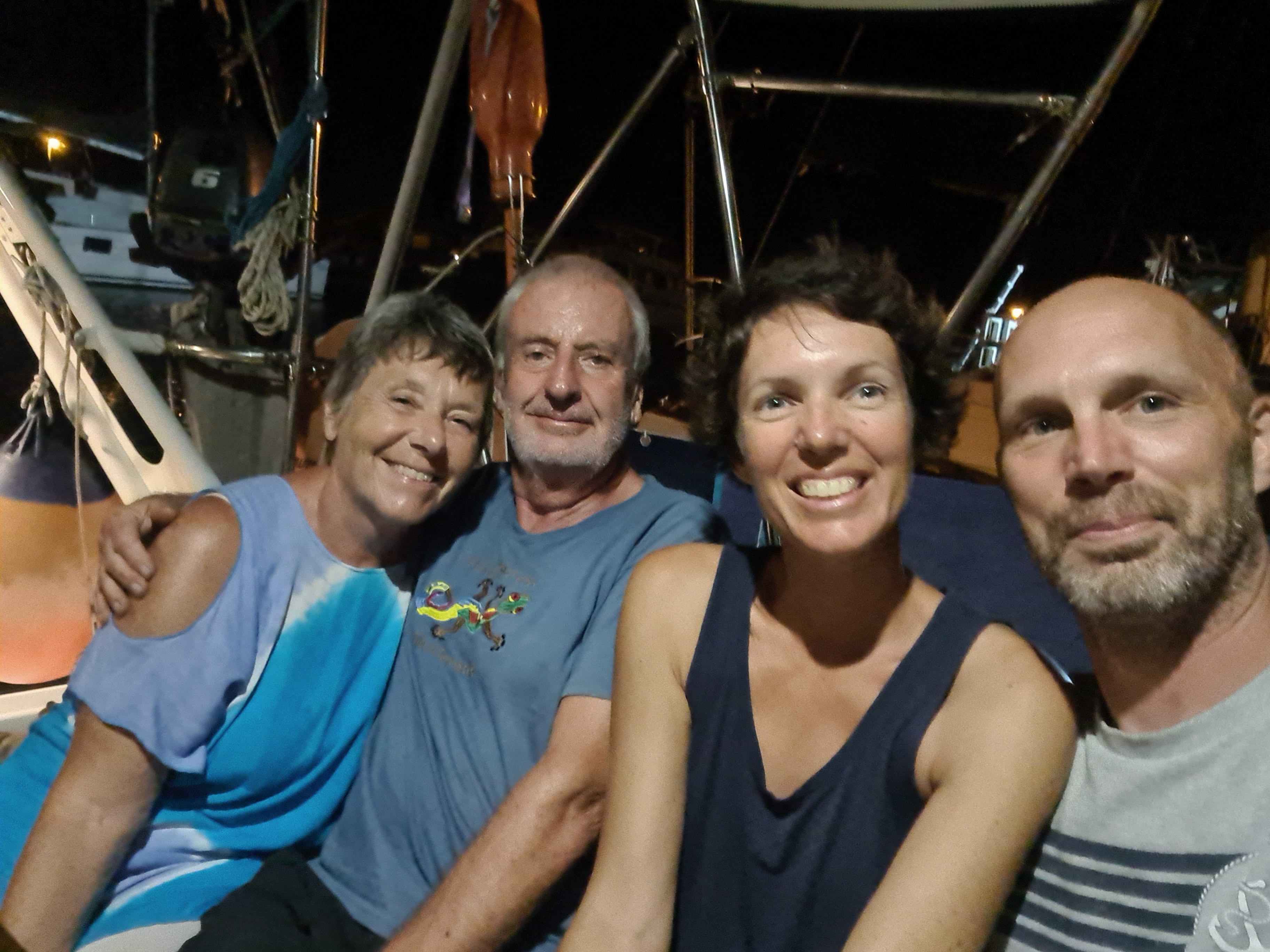 Nous retrouvons nos copains canadiens et avec eux les soirées réconfortantes sur l’un ou l’autre des bateaux. Philippe passe une journée, plongé dans la cale à l’arrière du moteur sur le joint tournant, l’accès n’est vraiment pas facile ! Il modifie un peu sa réparation afin qu’elle soit plus pérenne. Mais il va surement falloir le changer une fois arrivés en Floride. Ensuite il change un câble et remet en place sur le pilote, un vieil indicateur d’angle de barre qu’il avait réparé.