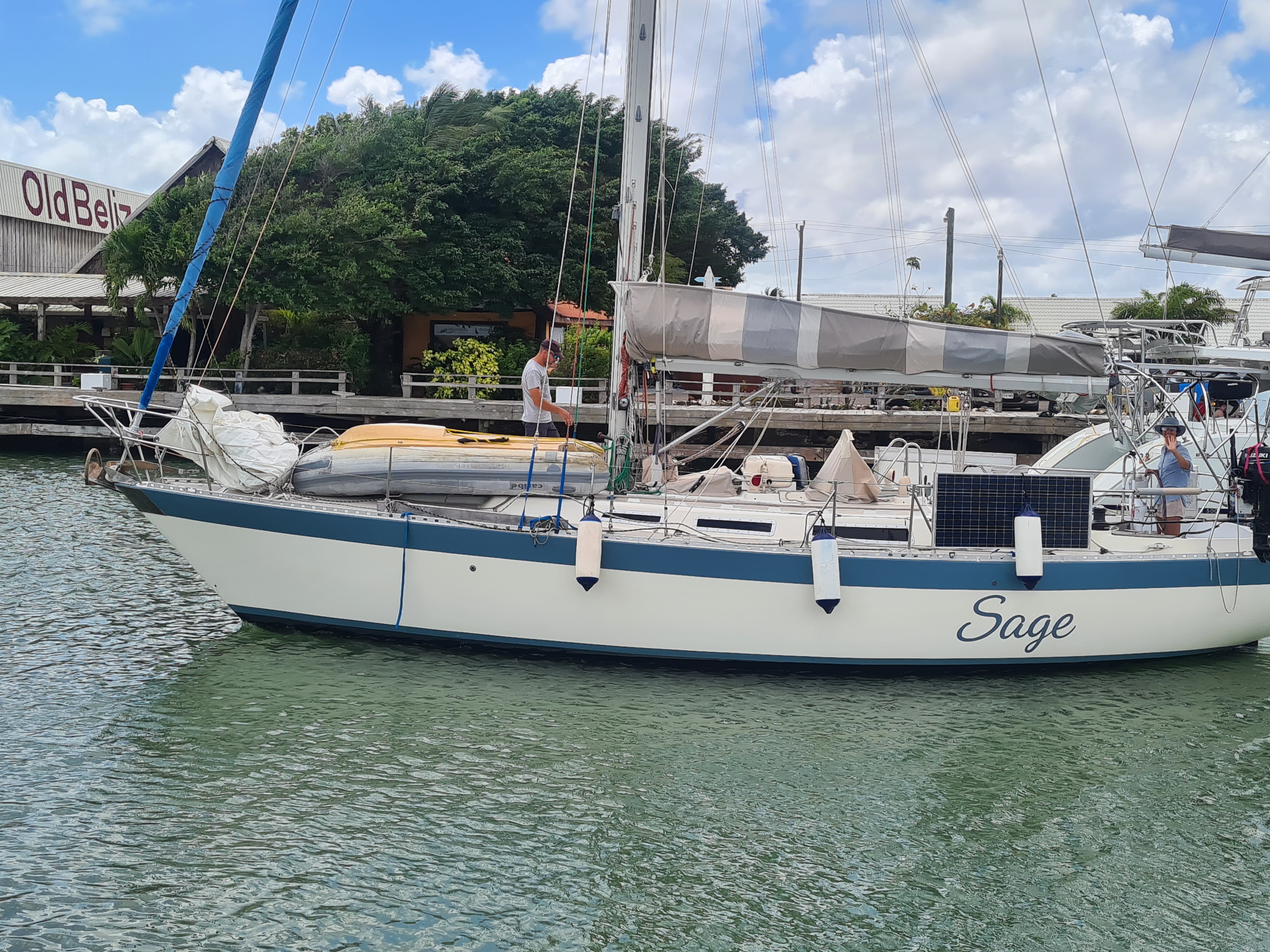 Là commence un périple administratif pour la capitaine et une plongée dans les fonds pour Philippe qui doit trouver une solution étant donné que les ressources sont limitées au Belize. Nous avions fait notre sortie administrative du Belize c’est-à-dire obtenu une clearance de départ pour le bateau et fait tamponner nos passeports par l’immigration. Je dois donc obtenir l’autorisation de ré-entrer sans que cela ne nous coûte encore bonbon. Fortement aidée par Colette la directrice de la Marina qui nous conduit aux différents bureaux, négocie pour nous énergiquement auprès de l’administration et explique le cas d’urgence ; j’obtiens des autorités portuaires un délai d‘une semaine moyennant encore 40 B$ (la première entrée nous avions obtenu jusqu’au 26 mars, mais ils n’en tiennent pas compte). Un officier d’immigration passe à bord gribouiller un « cancelled » sur le tampon de sortie de nos passeports et nous taxe encore de 90 B$ (« pour le déplacement »), puis le lendemain Colette nous conduit chez le douanier qui moyennant encore 40 B$ (et oui c’est dimanche !) nous établit une clearance au 14 mars.