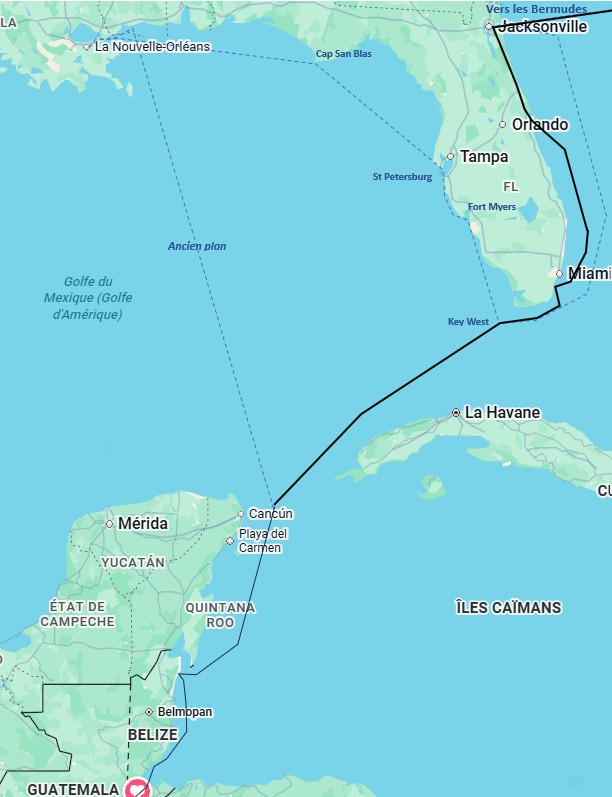Devant ces problèmes techniques que nous devons résoudre avant la transat retour, nous décidons d’abandonner la traversée du golfe du Mexique jusqu’au Mississipi. C’est un long détour, il est difficile de naviguer sur cette distance en une seule étape avec les fronts froids qui se succèdent sur cette zone à cette période. Et ensuite il faudrait entreprendre la descente de la côte Ouest de la Floride, ce qui fait un long chemin. Tant pis pour La Nouvelle Orléans, cap sur Key West !